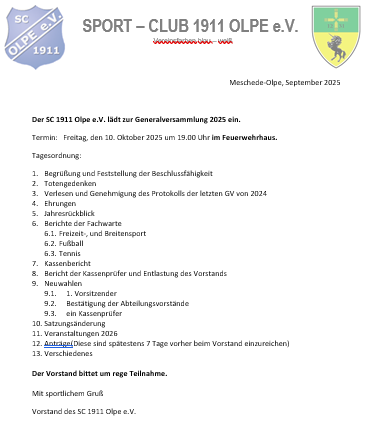 24. September 2025 Benno Bohne Aktuelles, Allgemein, Verein